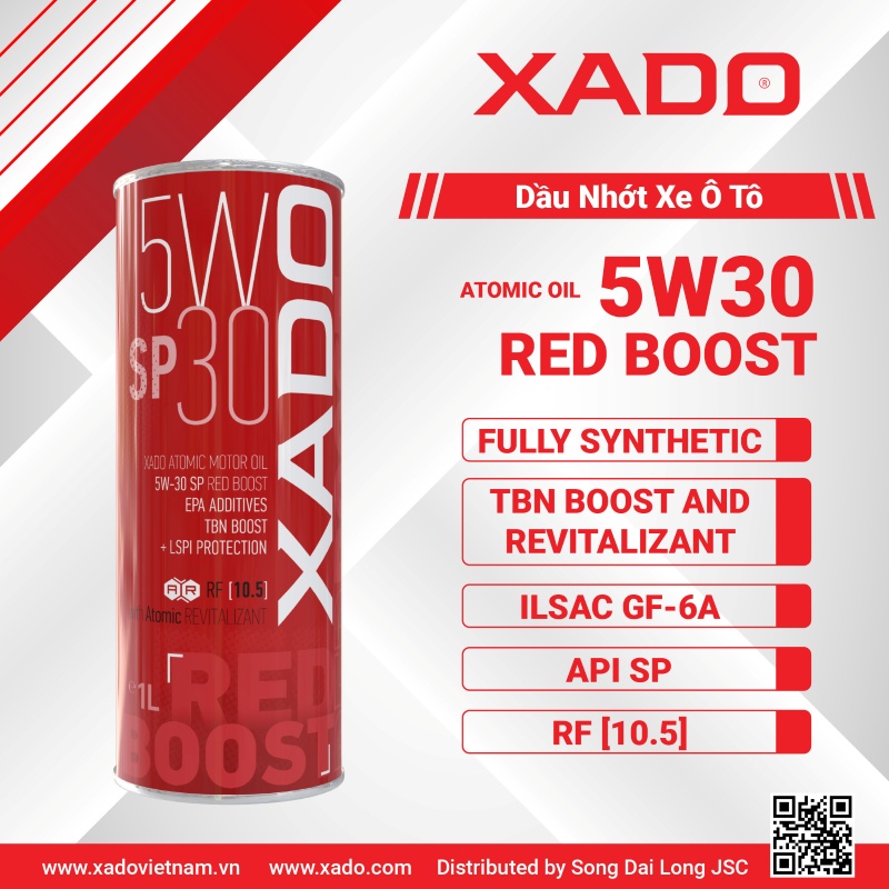 XADO RED BOOST 5W30 SP là một sản phẩm dầu động cơ chất lượng cao thuộc dòng XADO Red Boost, nổi bật với công nghệ Atomic Revitalizant cải tiến, giúp tối ưu hóa hiệu suất và bảo vệ động cơ trong điều kiện vận hành khắc nghiệt. Dưới đây là những đặc điểm nổi bật của sản phẩm: